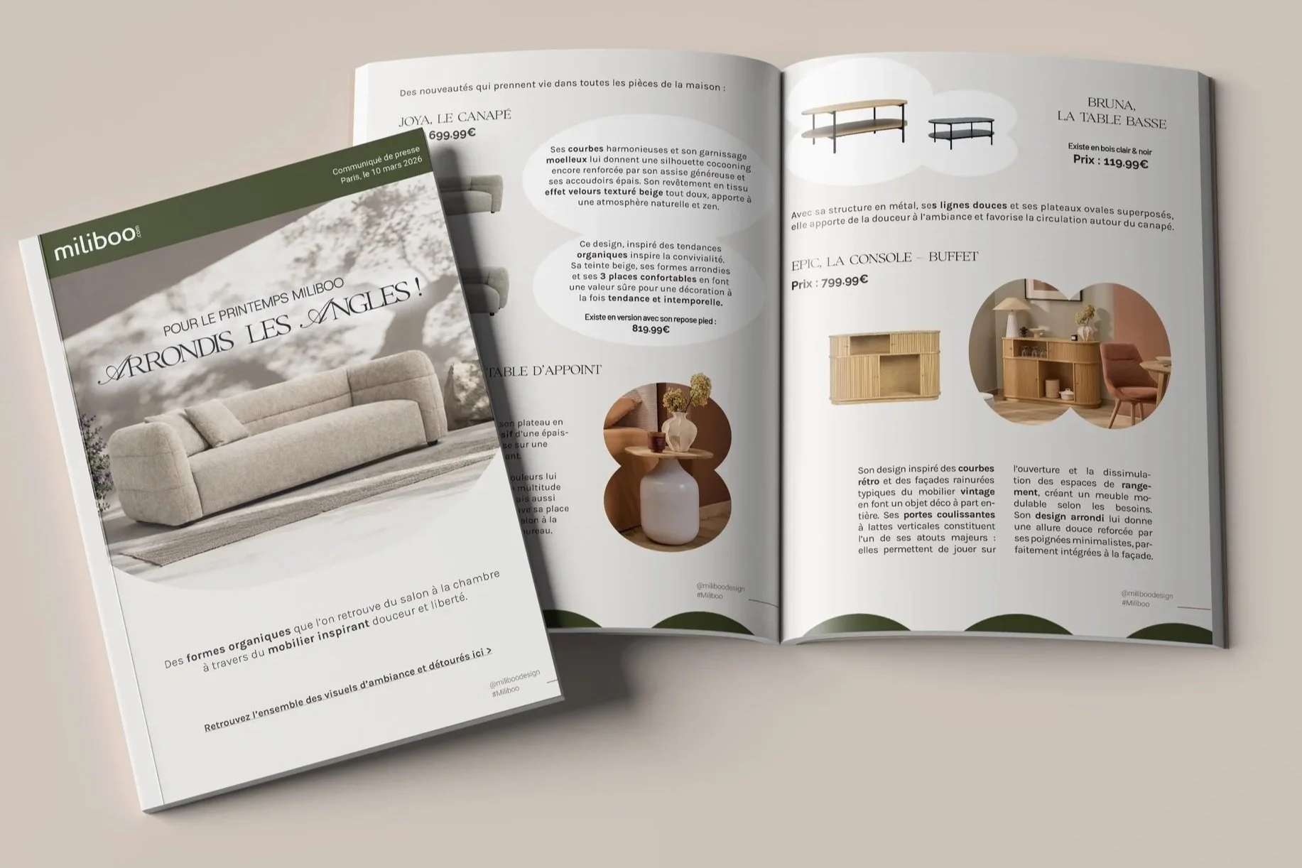 Depuis la fin de mes études, j’ai développé mon expertise à travers plusieurs expériences professionnelles, notamment en tant que graphic designer chez Miliboo depuis plus de deux ans, où je conçois des supports de communication visuelle pour le print et le digital. Cette expérience m’a permis de travailler sur des campagnes marketing, des visuels éditoriaux, des supports publicitaires et des contenus visuels destinés à valoriser l’image de marque et les produits.