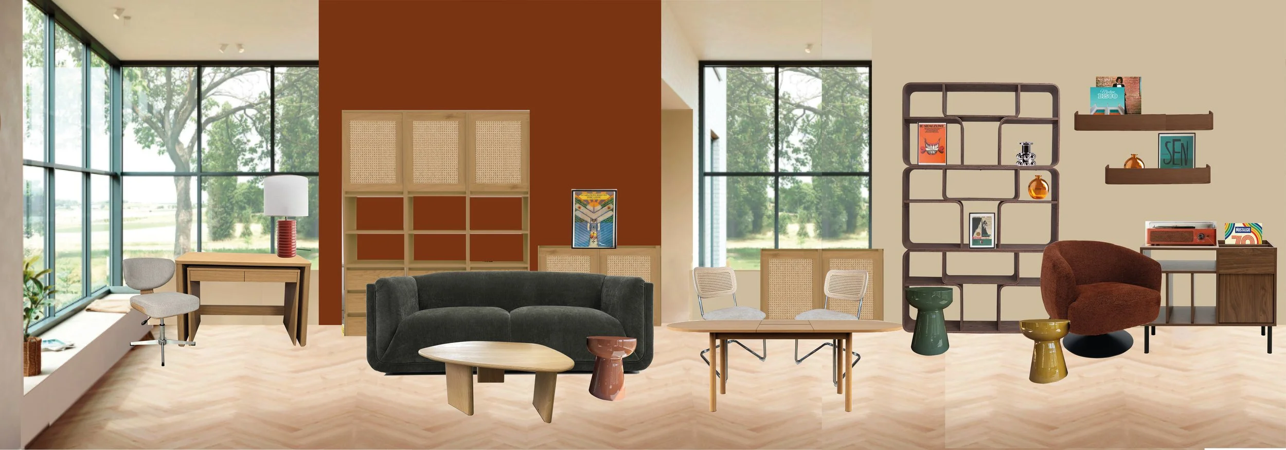Pour la palette de couleurs, je suis partie sur des teintes sobres et naturelles : marron, blanc cassé et noir.
