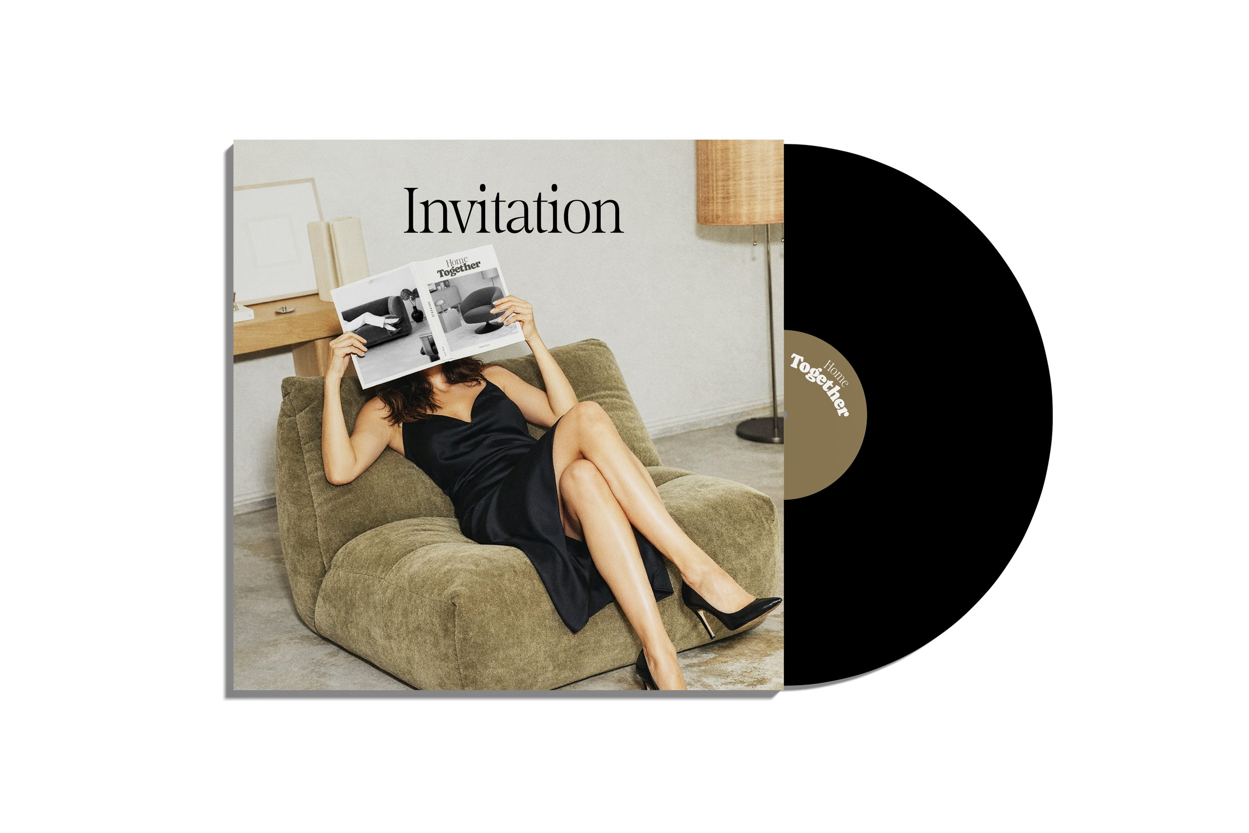 Création de l’invitation autour du concept du disque vinyle, en écho au meuble vinyle proposé dans la collection et pour renforcer l’immersion dans cet univers musical.